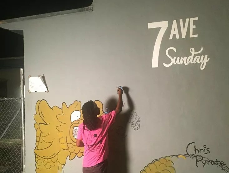 Participants in the upcoming 7th Avenue Sunday include 749 Art Studios, Chris Pyrate Studio/Gallery, the Bridge Art Space, and the bar Las Rosas. Among the dozens of creative businesses that have participated are ArtHood56 Studio Complex, Elks Lodge Art Studio Complex & Cafe, Jolt Radio, Brooklyn Vintage & Vinyl, Soundscape Studios Miami, Edge Zones Art Space, and Butter Gallery.