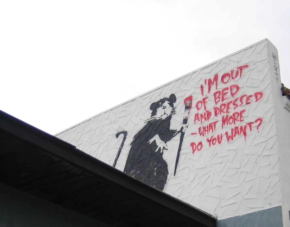 Afterward, in an interview with New Times‘ former sister newspaper the Village Voice that same year, Banksy said via email, “Commercial success is a mark of failure for a graffiti artist. We’re not supposed to be embraced in that way. When you look at how society rewards so many of the wrong people, it’s hard not to view financial reimbursement as a badge of self-serving mediocrity.”