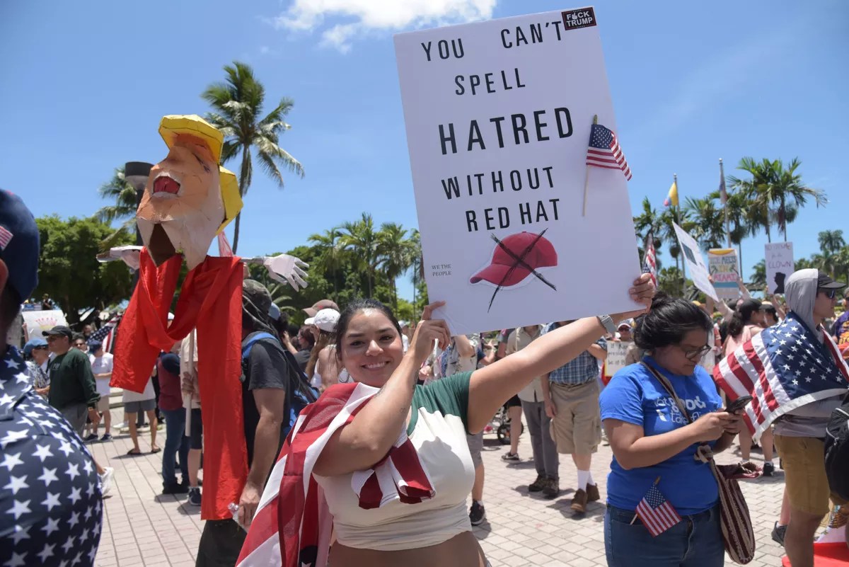 Many signs protested ICE raids in Miami.