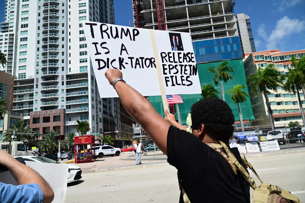 One protester demanded the release of the “Epstein Files.”