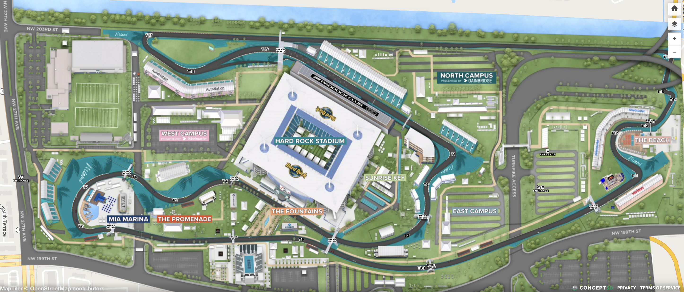 The Miami Grand Prix takes place on Sunday, May 4, at 4 p.m. EDT at Hard Rock Stadium (347 Don Shula Dr., Miami Gardens) in the temporary circuit built around the venue, called the Miami International Autodrome.