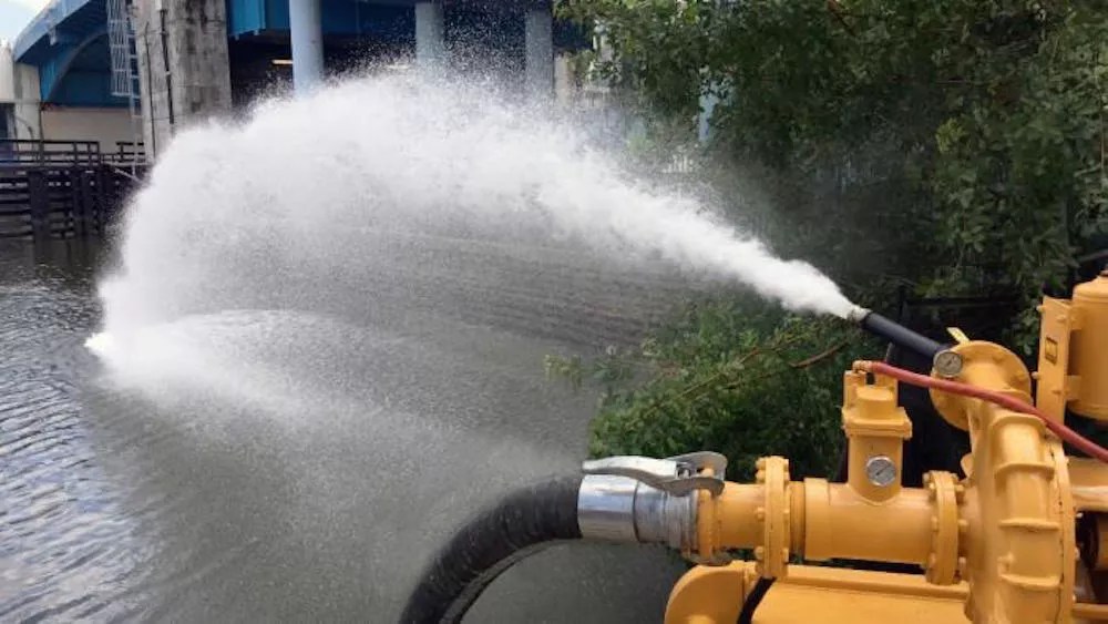 Flood Relief is pumping water along the seawall in Museum Park outside Pérez Art Museum Miami through Sunday, November 12. Soto is presenting an accompanying performative activation of the pumps every afternoon with performers Angel Garcia and Jenna Balfe. From 7 to 9 p.m. Thursday, November 9, there will be a musical performances by Oscar Bustillo, readings of topical work by writer Nathaniel Sandler and poet Cherry Pickman, and a dance piece by Balfe.