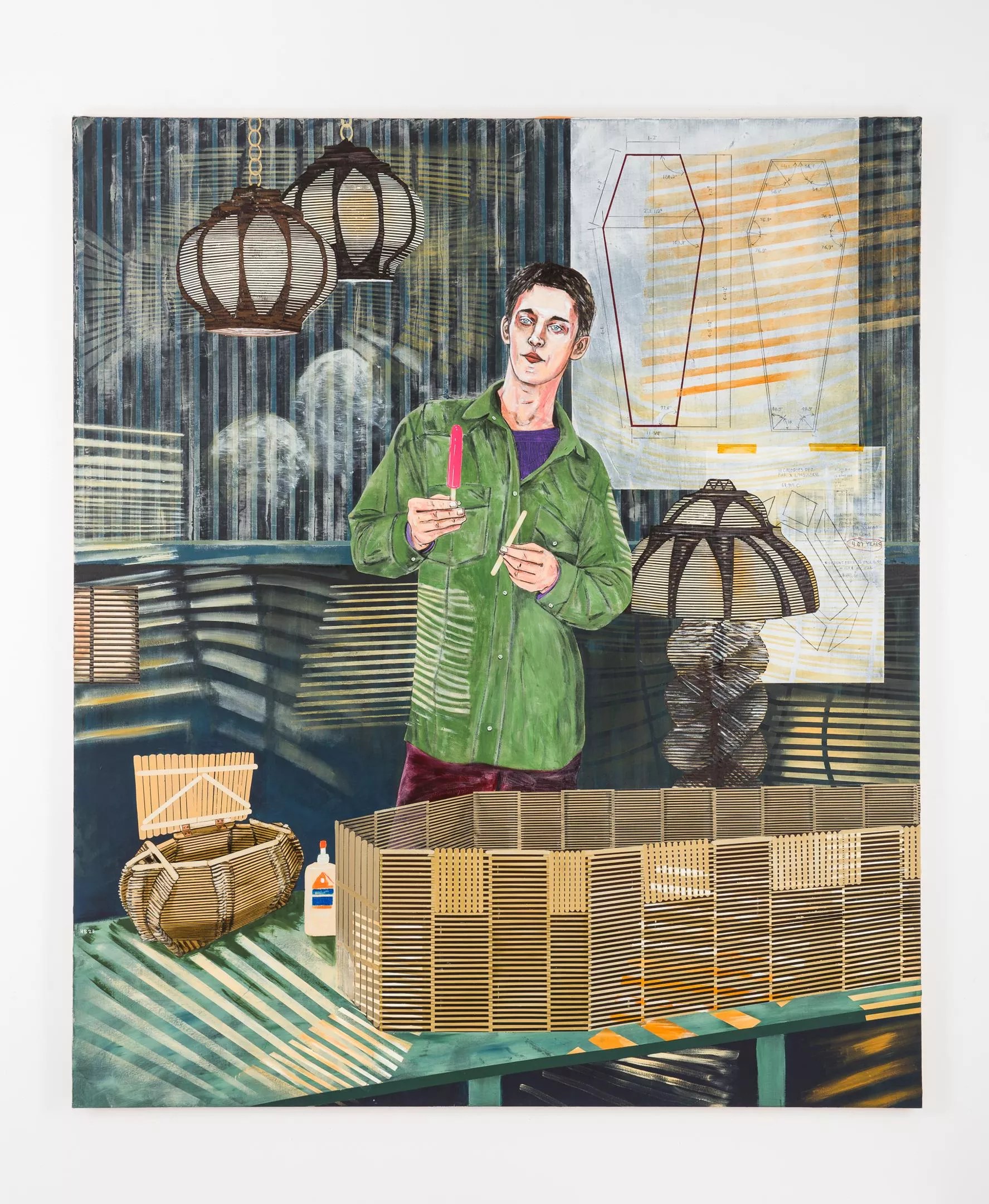 Hernan Bas, Conceptual artist #23 (Popsicle stick sculptor; a purist, he consumes materials in devotion to his craft, leading to his inevitable last work), 2023