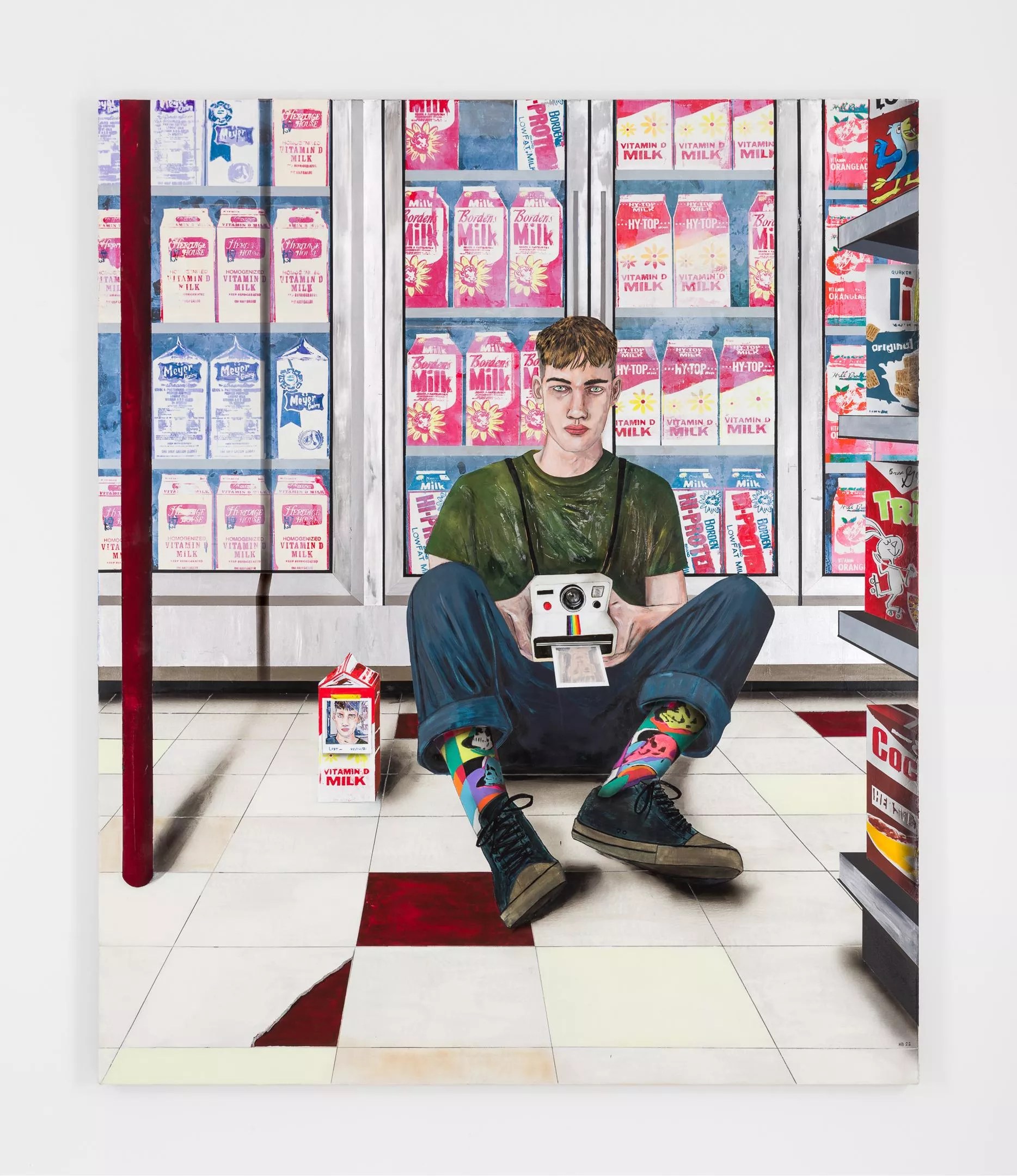 Hernan Bas, Conceptual artist #19 (A child of the ’80s, he places his Polaroid self-portraits in a familiar spot whenever he’s feeling lost), 2023