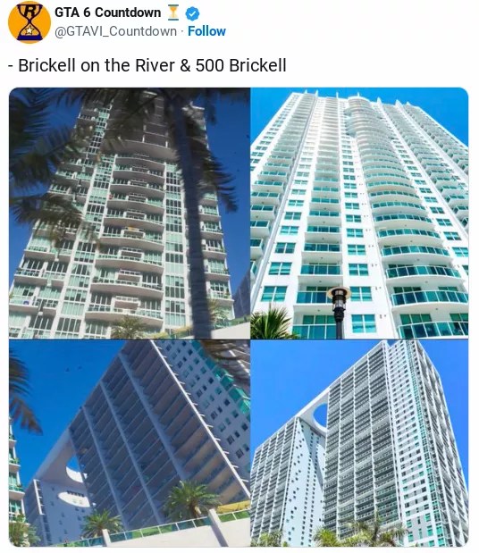 These glimmering jewels of the Miami skyline are hard to miss in real life. Now, a clone of them shines brightly in the simulated world of GTA 6.