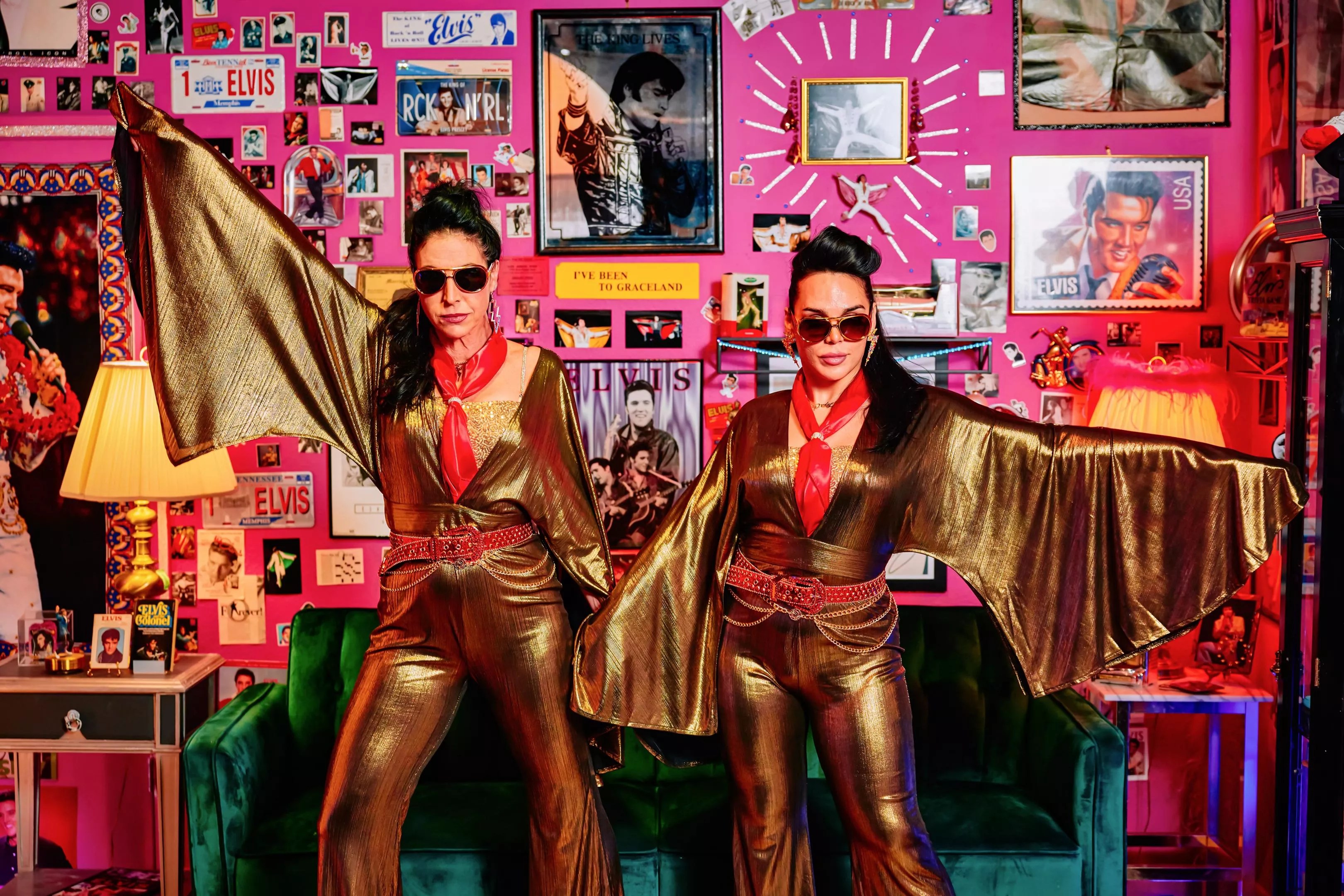 Playwriter Bramhandkar lives in New York City and has known the Bravos for years. The writer gave her old producer friend a quick elevator pitch one day for an idea for a show. “It’s about a woman who runs an Elvis fan club,” says Tanya, laughing as she recalls the moment. Bramhandkar knew she and her sister could create a wholly immersive experience around that thought. And a year later, Juggerknot is ready to open Conjuring the King.