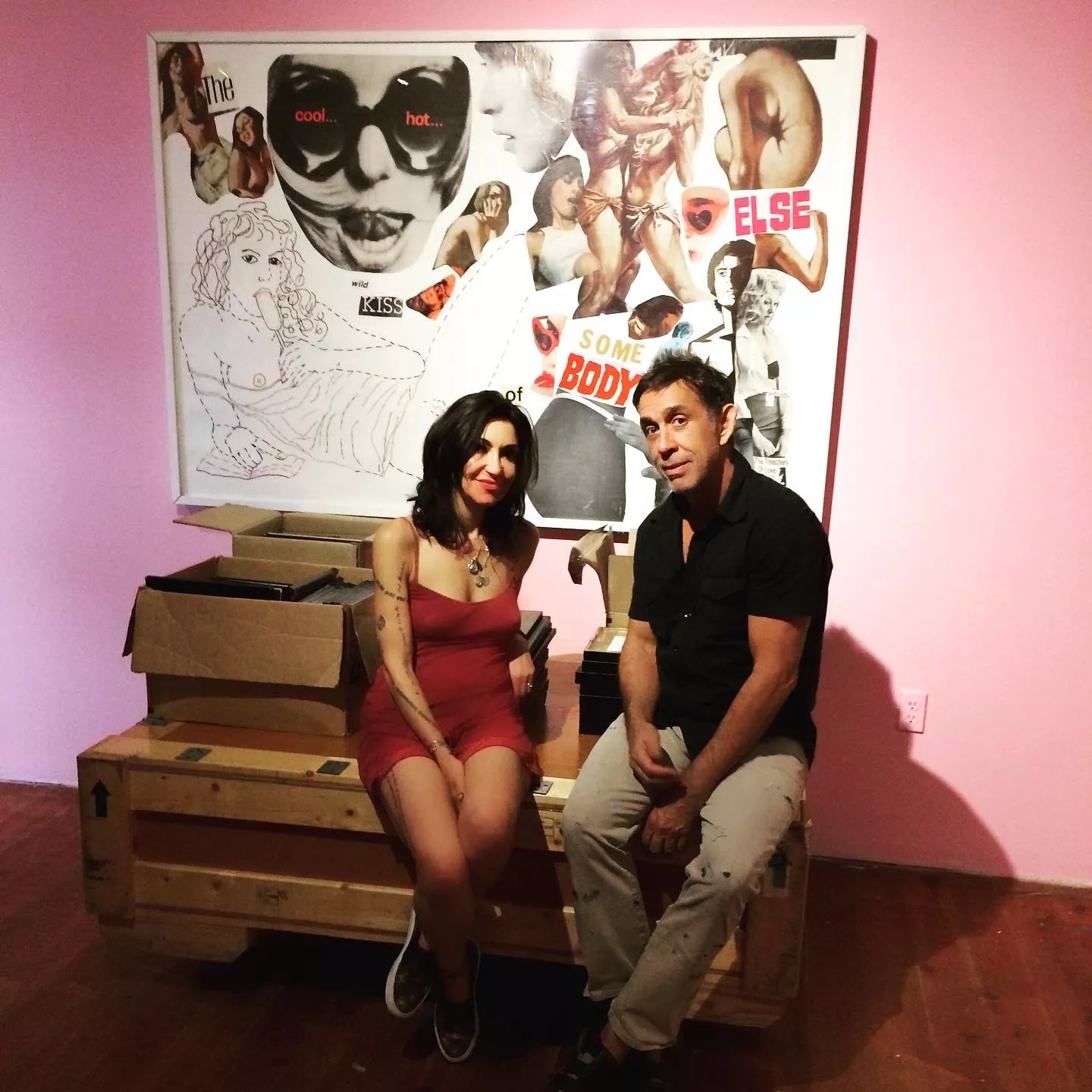 Artist Eurydice and Swampspace gallery owner Oliver Sanchez sit in front of her The Cool Hot Wet Kiss of Somebody Else