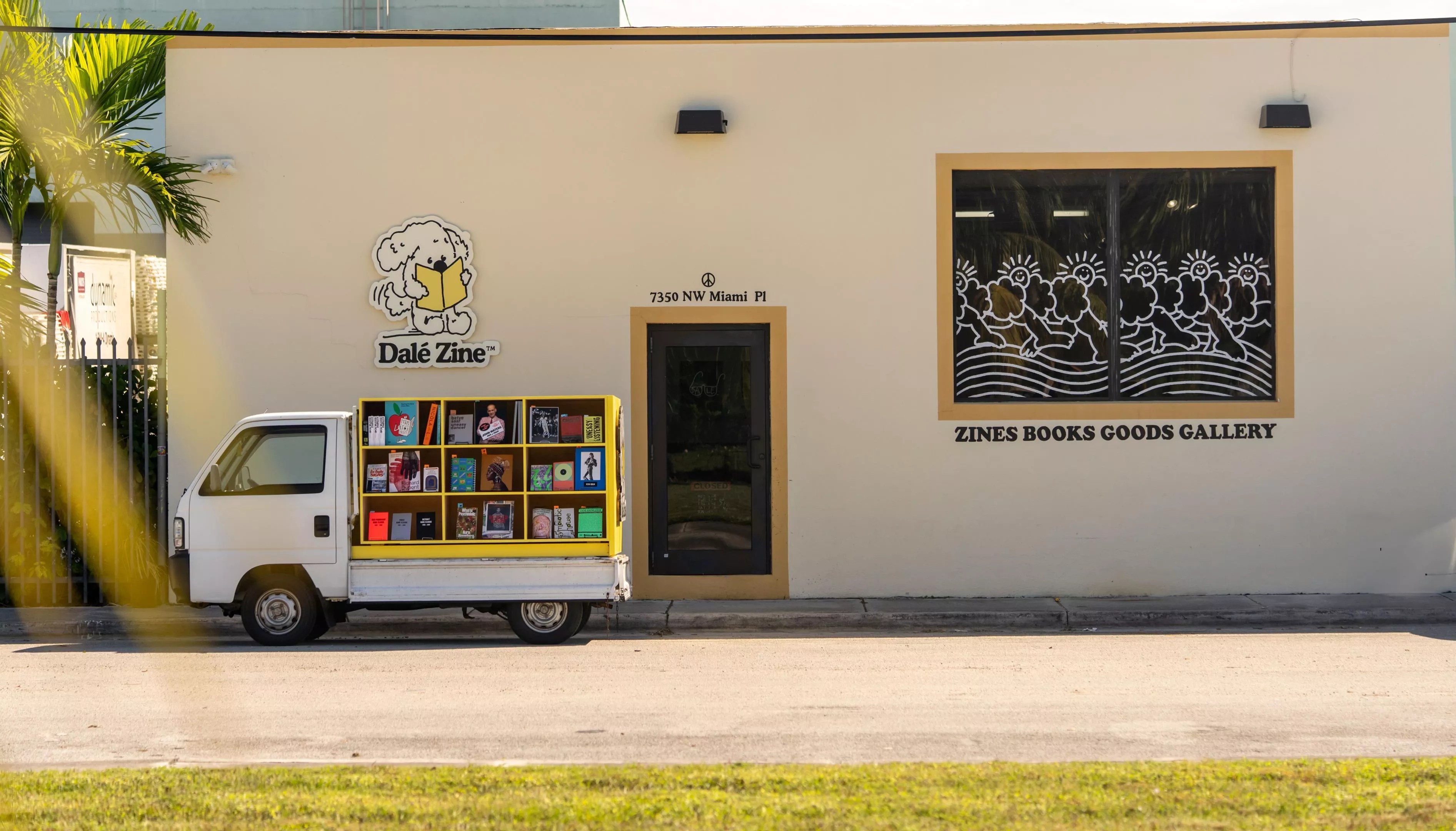 This isn’t just any standard bookmobile, however. The shop, which New Times declared the Best Bookstore in Miami earlier this year, is using a converted mini-truck from Japan to house the Mobile Dále Zine Shop. Co-owner Steve Saiz purchased a 1996 Honda Acty, part of a special class of vehicles called kei trucks, and fitted it with a bright yellow display shelf built by local carpentry business Koki Customs.