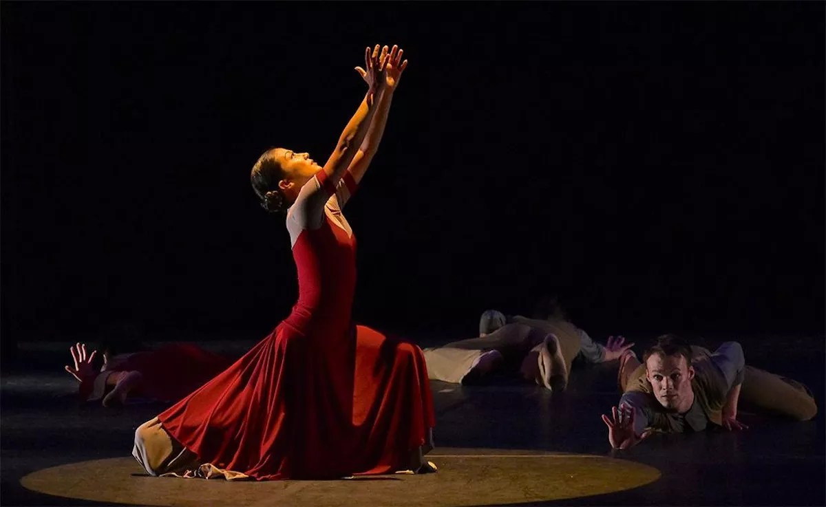 Isabelle Haas, Allyn Ginns Ayers (center), David Harris, and Matthew Huefner in Dance Now! Miami’s Anusim.