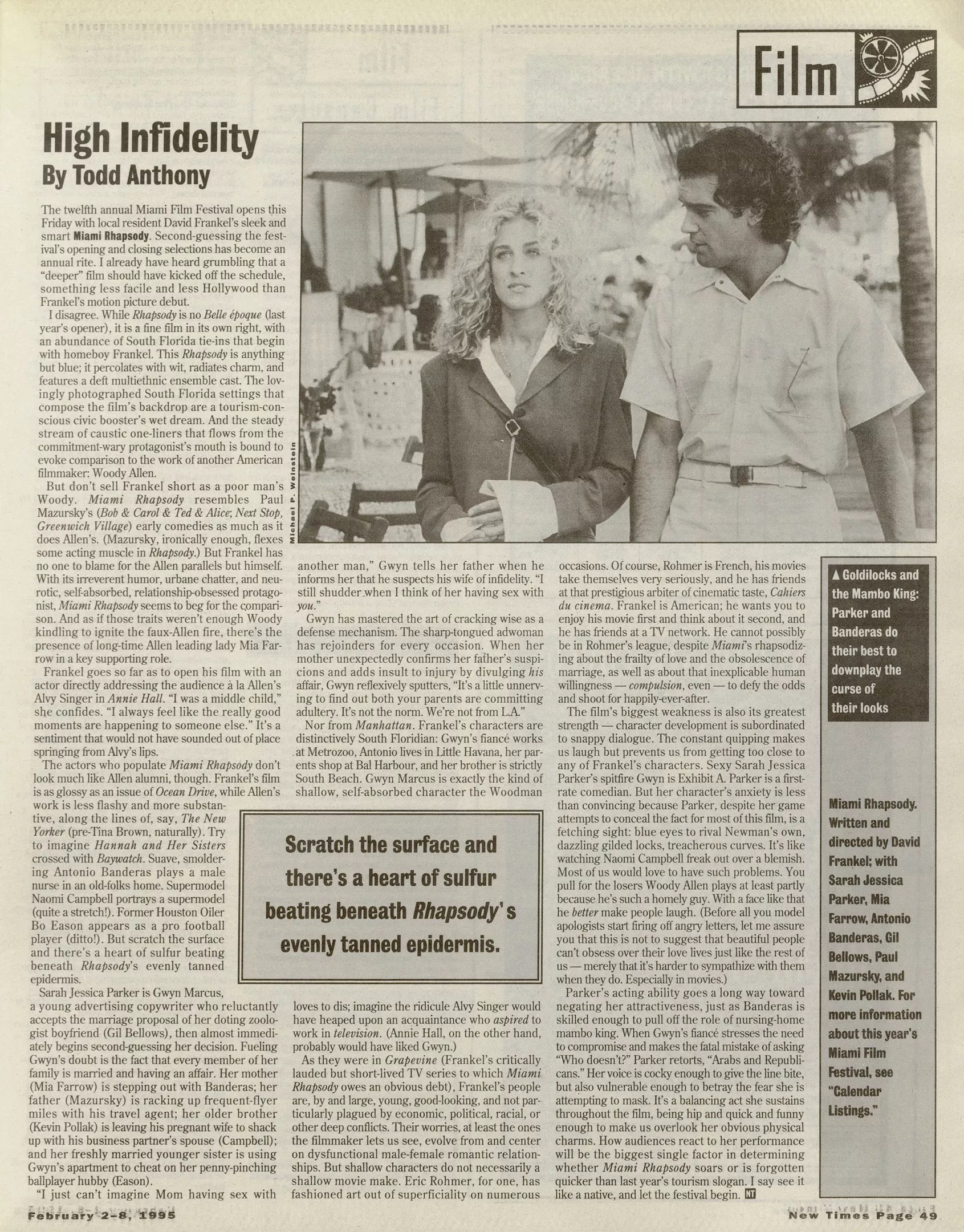 Staff writer Todd Anthony’s review of Miami Rhapsody as it appeared in the February 2-8, 1995, issue of New Times
