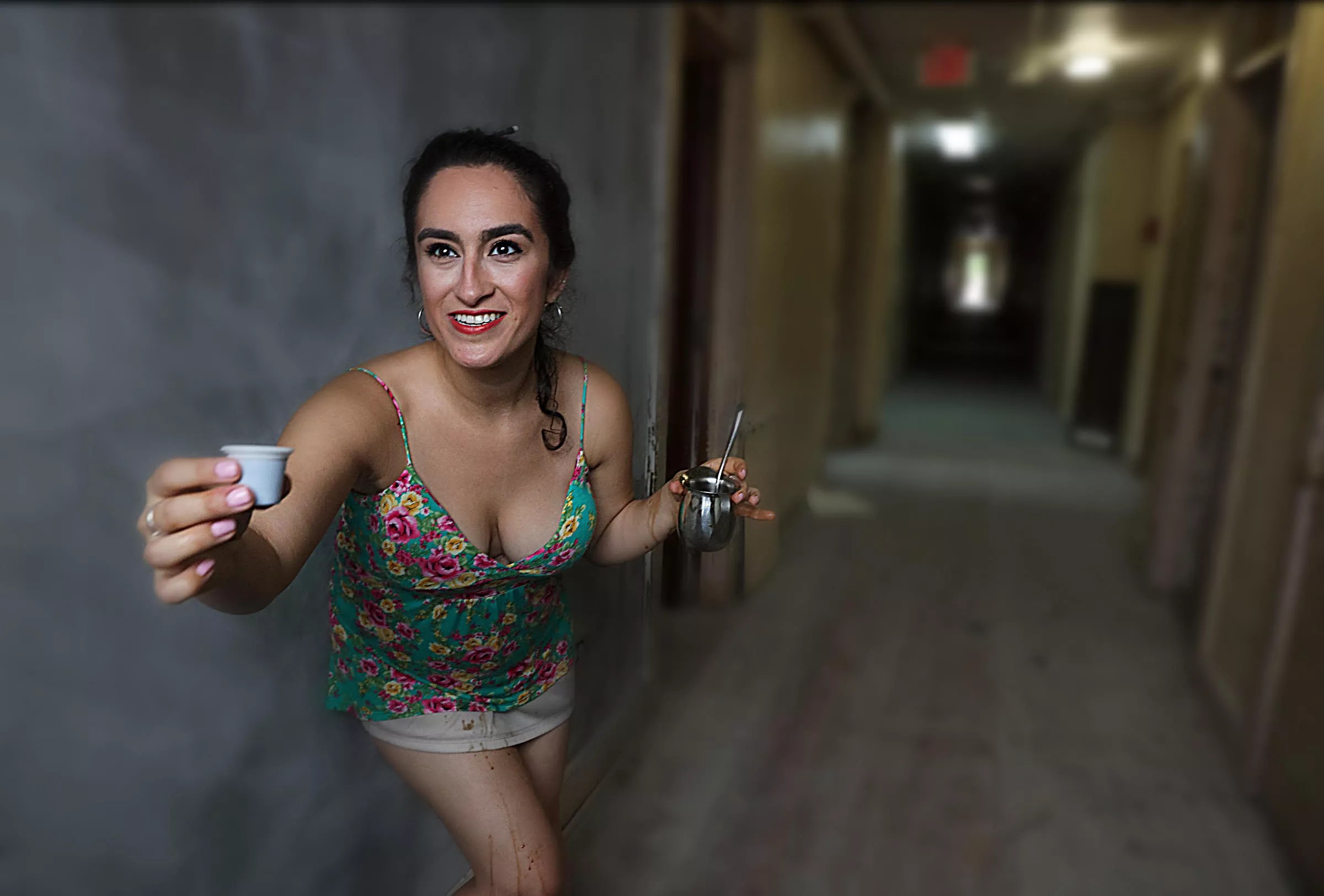 Herrera wears two hats for the production: She’s also the marketing director, managing public relations initiatives via JLPR, a company founded by her sister JennyLee Molina. JLPR also promotes 305 Cafecito, Miami’s official coffee hour. Earlier this year, as the production was taking shape, Herrera morphed into the role of “305 Cafecito Girl,” who hawks Miami’s famous beverage on the first floor of the Tower Hotel, where audiences can roam and interact with performers.