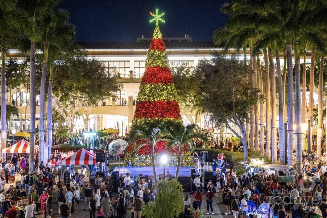Shops at Merrick Park transformed into a magical winter wonderland for its 21st annual tree-lighting celebration, presented in partnership with Nicklaus Children’s Hospital. Lea Rose and Jordan Kanegis World Red Eye