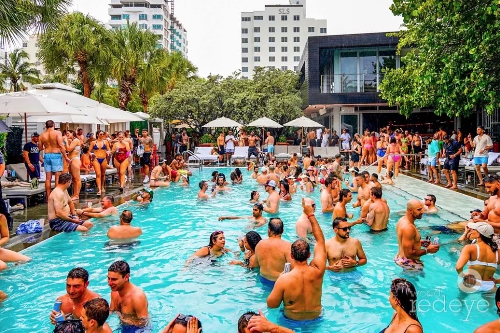 Rain or shine, partygoers headed to Hyde Beach on Saturday for its iconic day party. They ordered endless bottle parades and sipped on handcrafted cocktails by the pool. World Red Eye