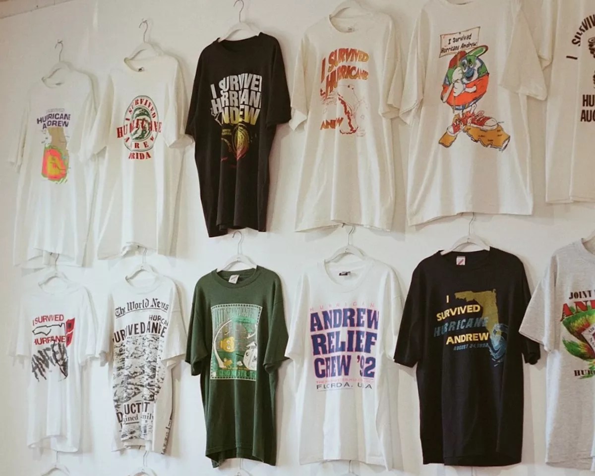 Rodriguez, a freelance art director and avid second hand-clothing aficionado, initially noticed a common thread of Hurricane Andrew graphic T-shirts throughout local thrift stores in 2015.