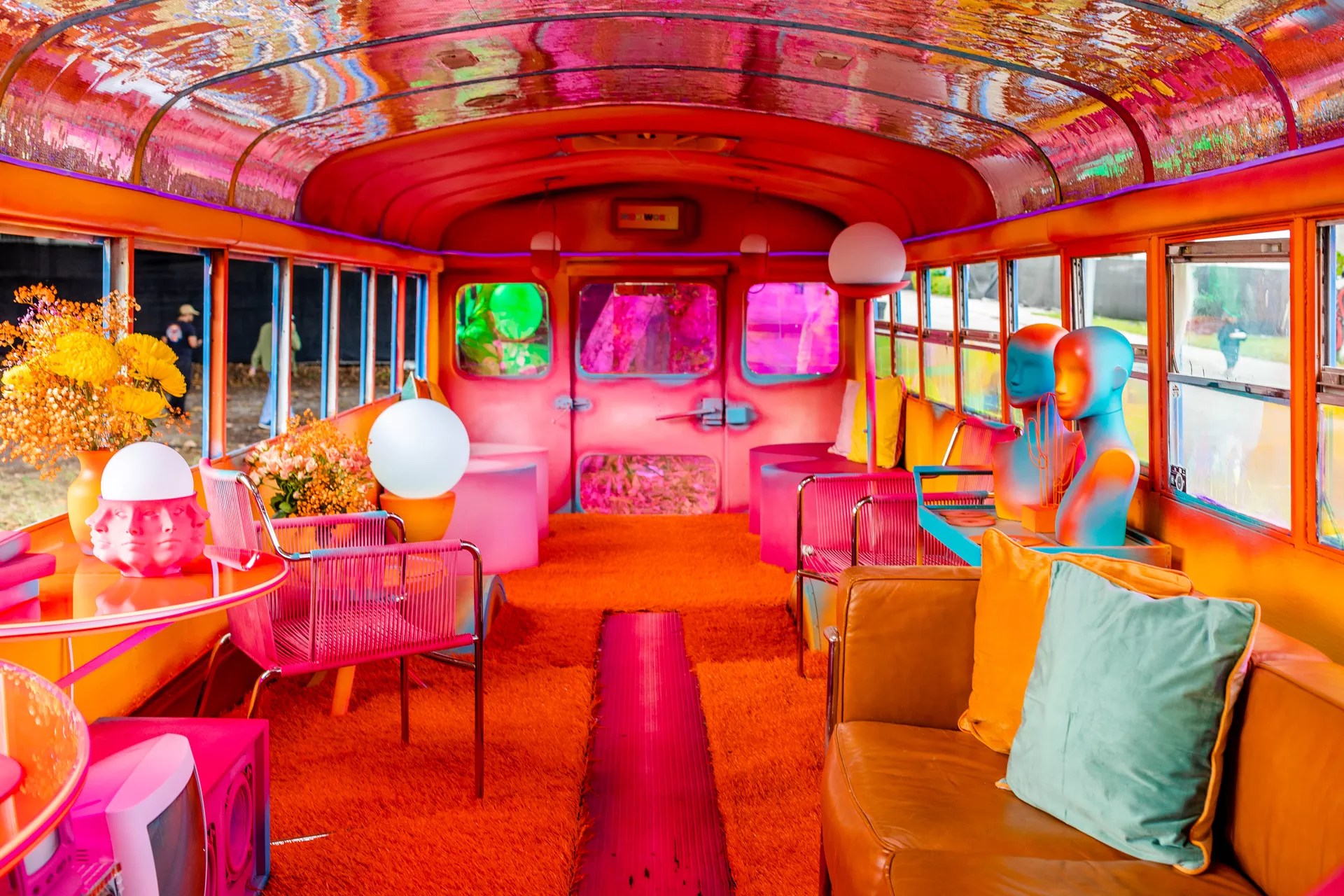 “I always design in the mindset of my inner child. I love creating installations you can feel and touch, like the school bus and limo,” Gessa explains. “Those are real, vintage cars, and it’s like you’re inside another world where you can interact with the props.”
