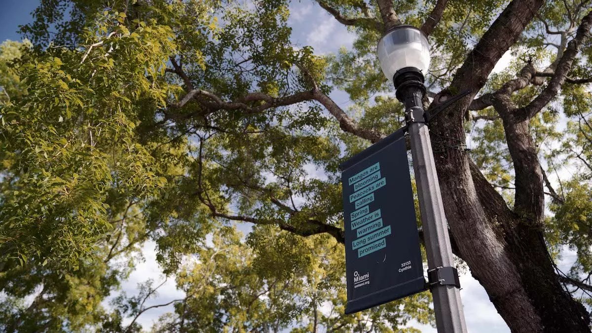 Miami’s original arts district is exhibiting 100 ZIP code-inspired poems, printed on banners placed on streetlight posts throughout the neighborhood.