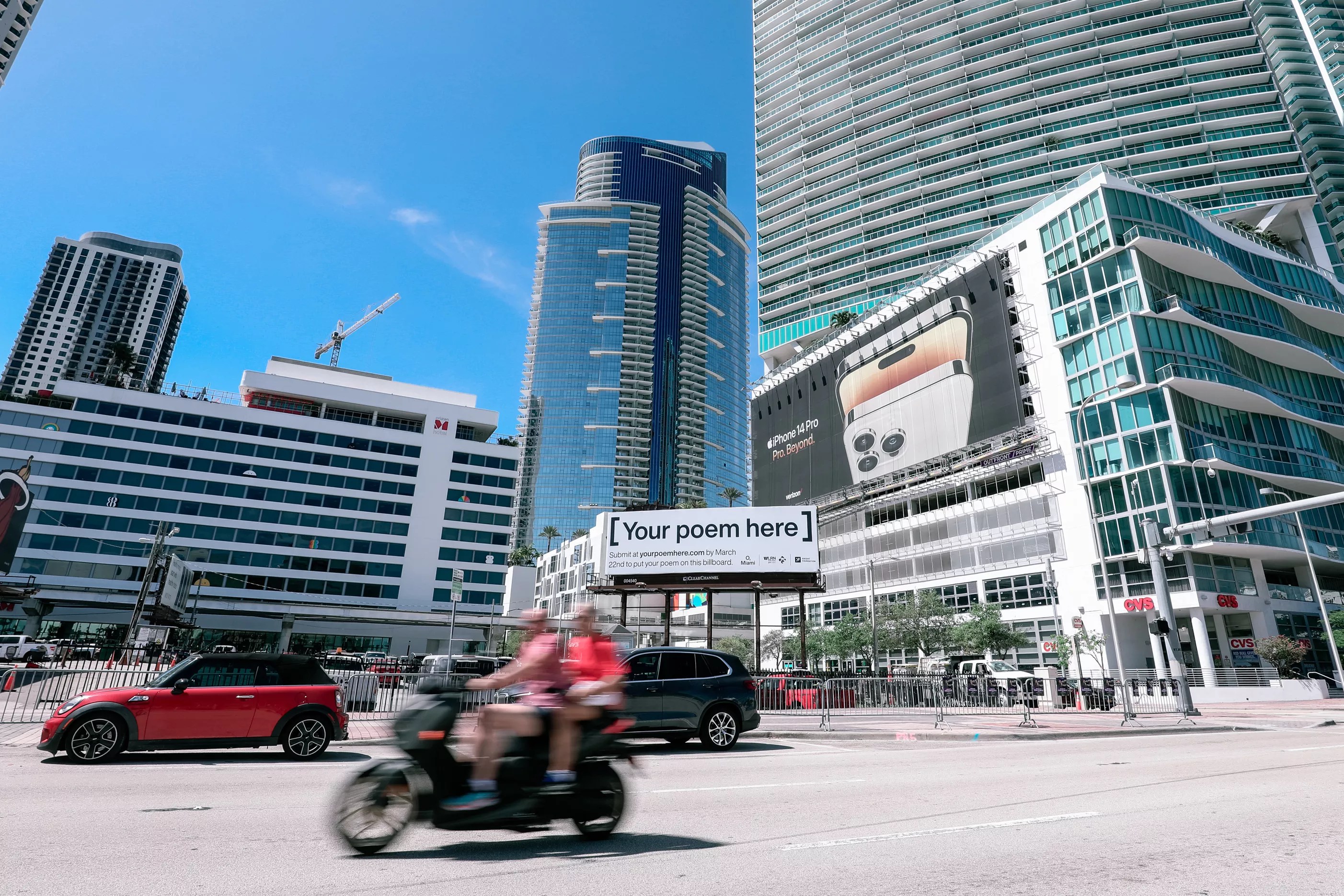 “[ Your poem here ]” billboard project in downtown Miami for the 2023 O, Miami Poetry Festival