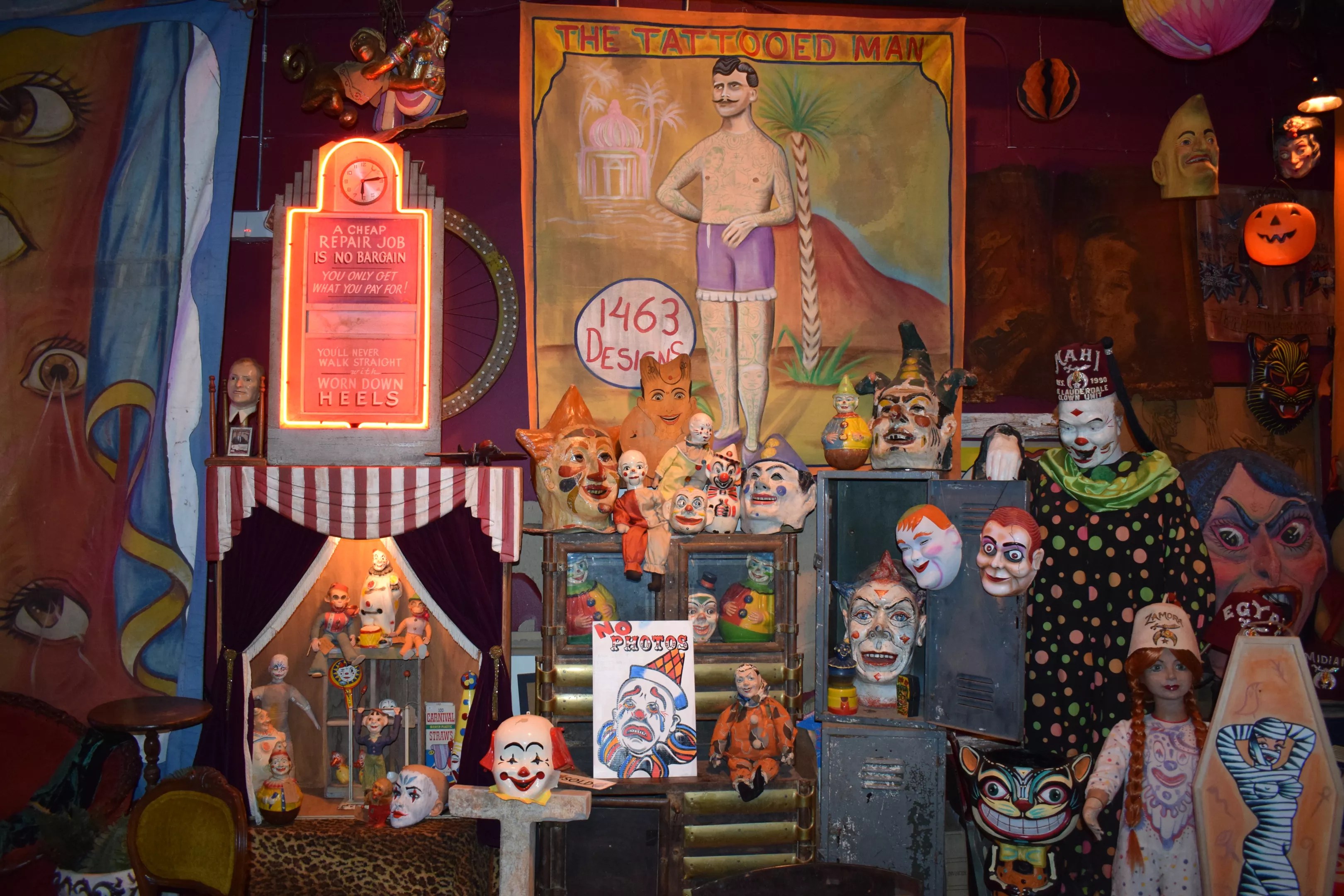 It’s this level of object empathy that permeates Old Ghosts, found just off I-595 in Fort Lauderdale. The store is home to a collection of antique oddities, peculiar artifacts from some bizarre avenue of world history: taxidermy animals, papier-m’ché clown heads, carnival sideshow banners.