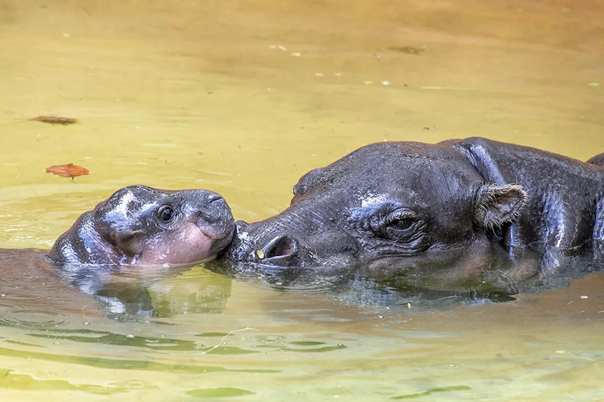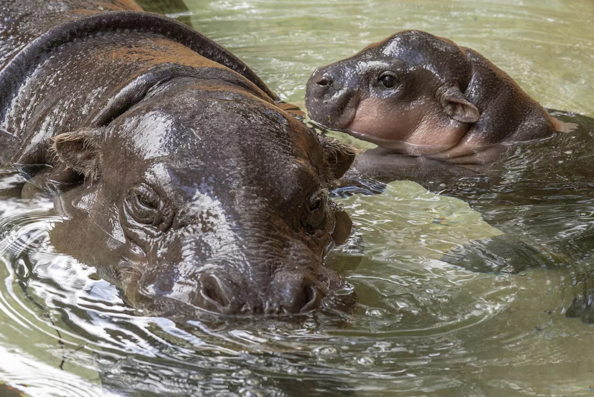 Meet Miami’s mother-and-son pygmy hippo duo, Kelsey and Aubergine.