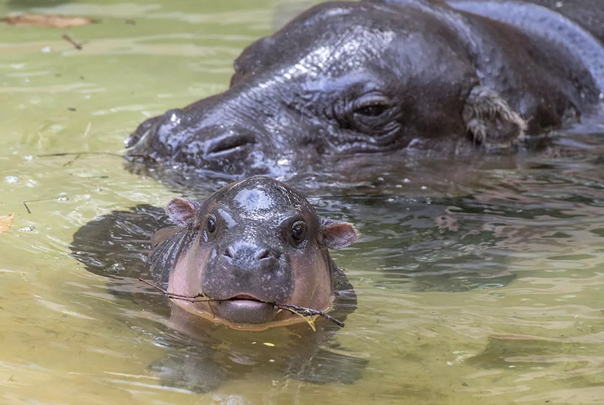 Born at the Baton Rouge Zoo in Louisiana, 32-year-old pygmy hippopotamus Kelsey gave birth to Aubergine (French for “eggplant”) at Zoo Miami back in August 2018.