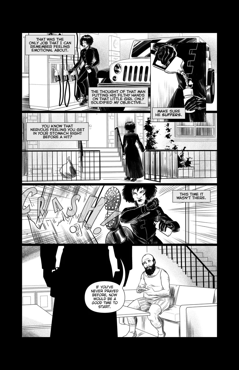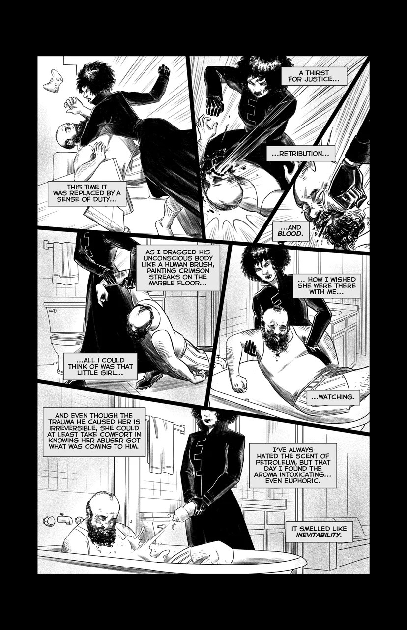 The revenge-fantasy comic explores what happens when women become the aggressors and break the victim stereotype. “What you see in Popova is the extreme. They do something radical to fight back,” Torres explains.