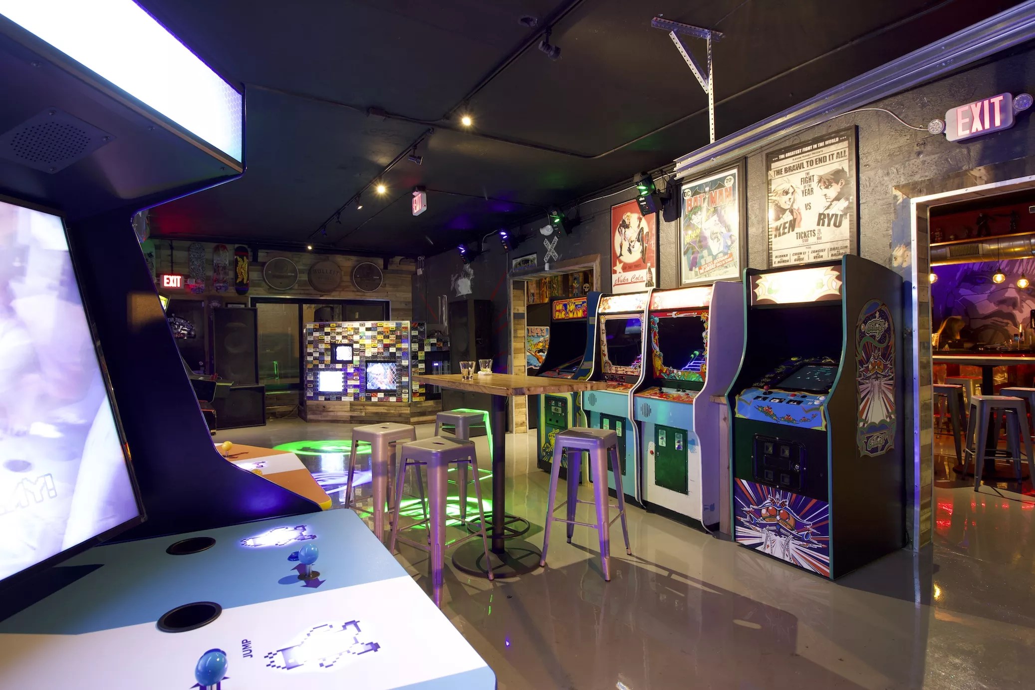 3. Topgolf. Fore! In addition to offering a one-of-a-kind golfing experience, Topgolf’s Miami Gardens location also has a handful of shuffleboard tables, cornhole, beer pong tables, pool tables, and an 18-foot putting mat. 17321 NW Seventh Ave., Miami Gardens; 305-357-6151; topgolf.com. Monday through Thursday 9 a.m. to 1 a.m., Friday and Saturday 9 a.m. to 2 a.m., Sunday 9 a.m. to midnight. Fort Lauderdale’s Glitch Bar is a gamer’s heaven. Courtesy of Glitch Bar