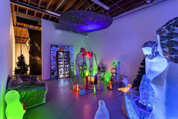 Locust Projects has launched the career of many Miami artists and welcomed some of the nation’s most exciting young talent. Founded in 1998 by then-Miami-based artists Elizabeth Withstandley, Westen Charles, and Cooper, Locust Projects has stuck to its mission to provide an experimental space for artists, free from the pressure of gallery sales or limitations on project or space. Locust is currently presenting three exhibitions, by Brooklyn-based artist Katie Bell, presenting an abstract sculptural installation titled Backsplash II; Philadelphia-based artist Alexis Gideon’s The Comet and the Glacier, a video opera encased in an immersive galactic dreamscape; and Miami’s own Huffer Collective – a collaboration of Miami artists AholSniffsGlue, the President, and Swampdog – in an installation titled Save Your Selves, which features objects collected from the trio’s undeniably distinct Miami upbringing.