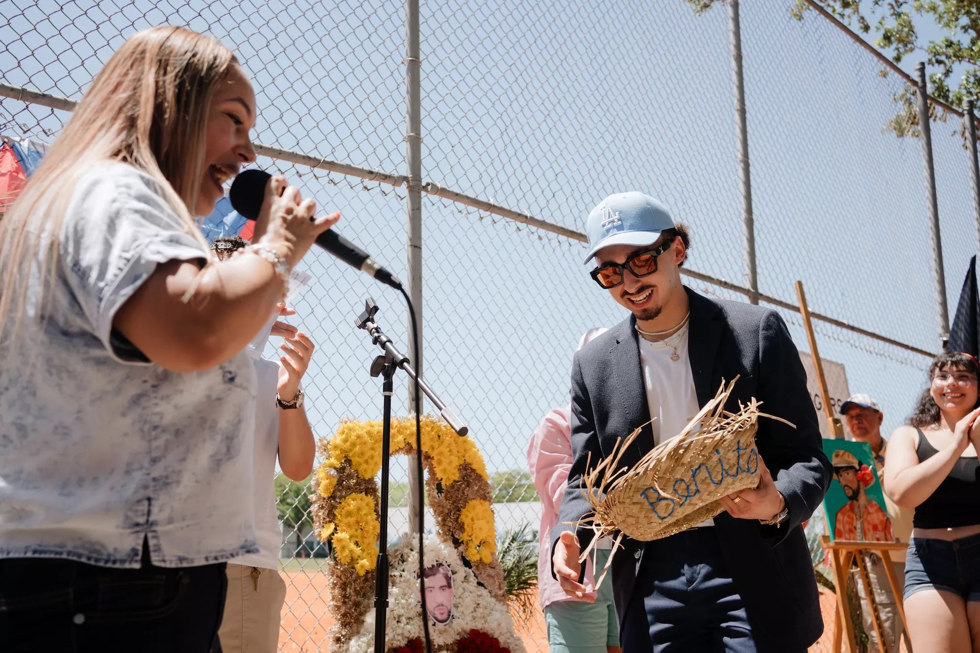 But the main draw was the Bad Bunny lookalike contest, which drew Benito clones dressed in his more recent, laid-back fashion: white tees, blazers, khakis, shades, and baseball caps. The contestants stepped up to the mic to show off their best Benito impressions, reciting their favorite Bad Bunny lines for the crowd.