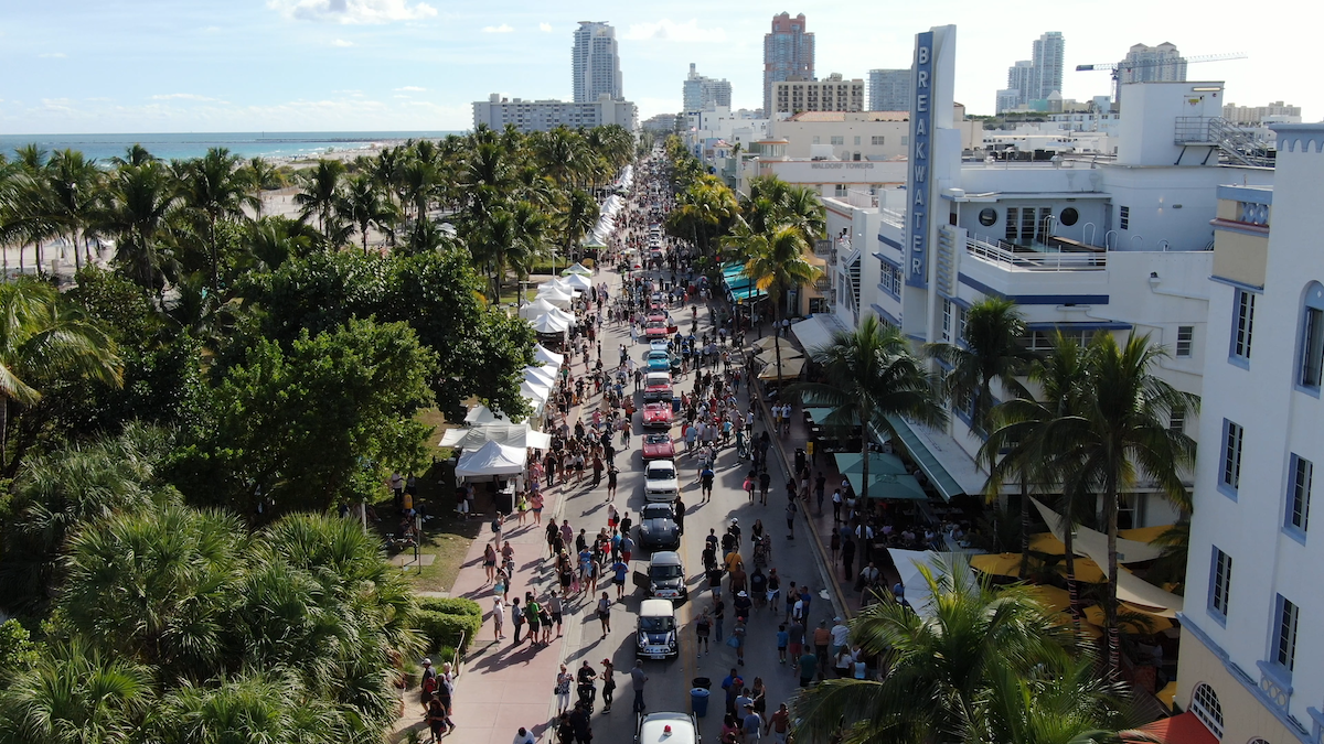 Classic cars, vendors, and more line up along Ocean Drive for Art Deco Weekend.