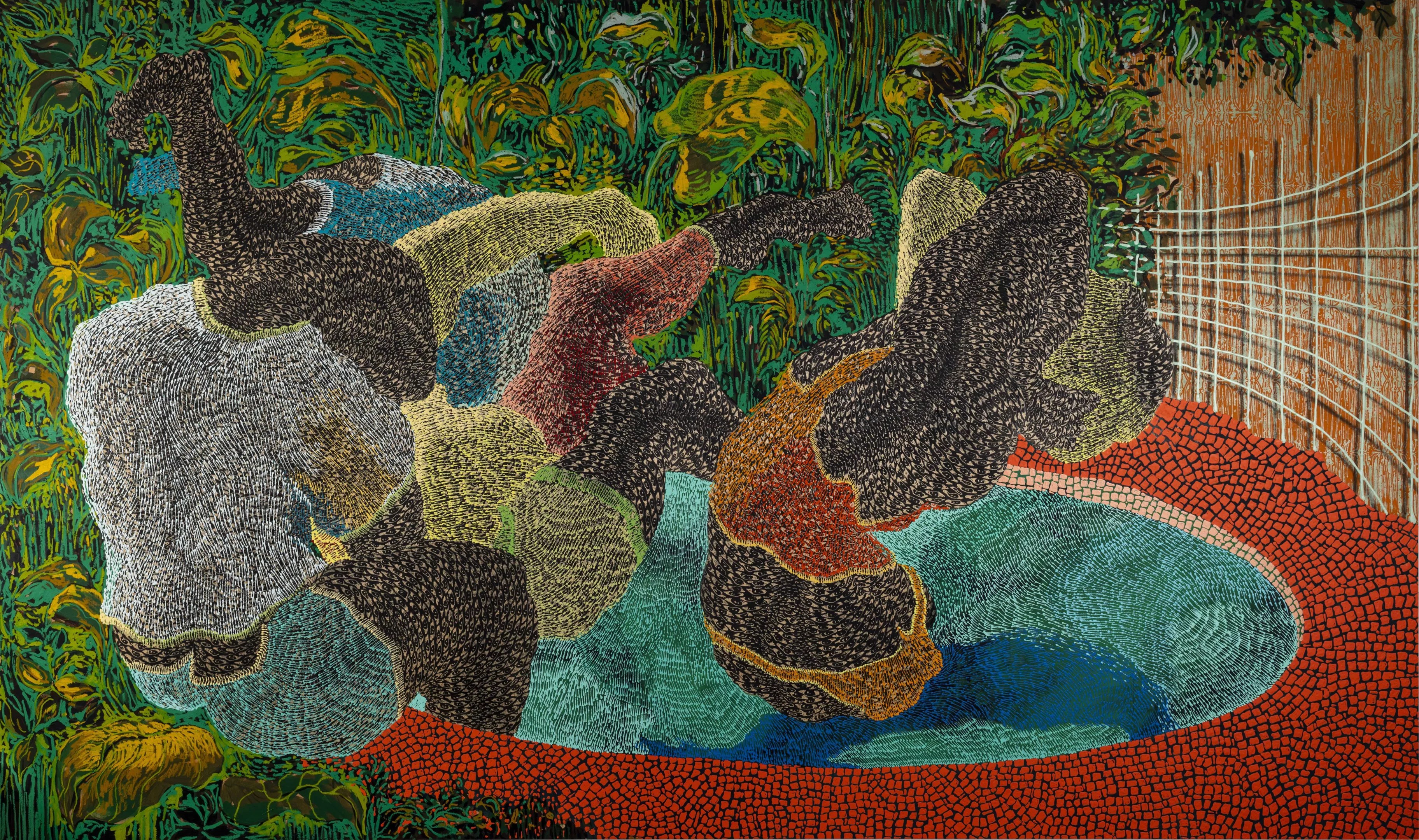 The fluidity of the aquatic elements displayed – from mosaic pools to a simmering soup joumou – speak to being a Haitian-American raised in Miami and, concurrently, the queer perspective of William’s coming of age within these neighborhoods, of being able to speak to your family’s defense in front of immigration officials but then having to defend your sexual orientation. There is a wistful richness in carving out a life for oneself when you cannot turn back to a homeland across miles of sea and of finding yourself in the most uncanny suburban structures.