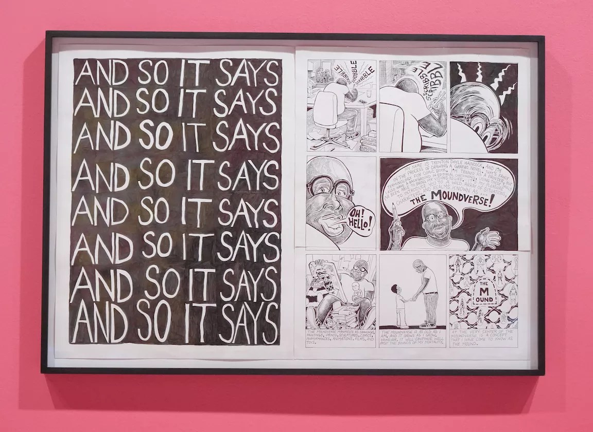 A piece in Trenton Doyle Hancock’s “I Made a Mound City in Miami-Dade County.”