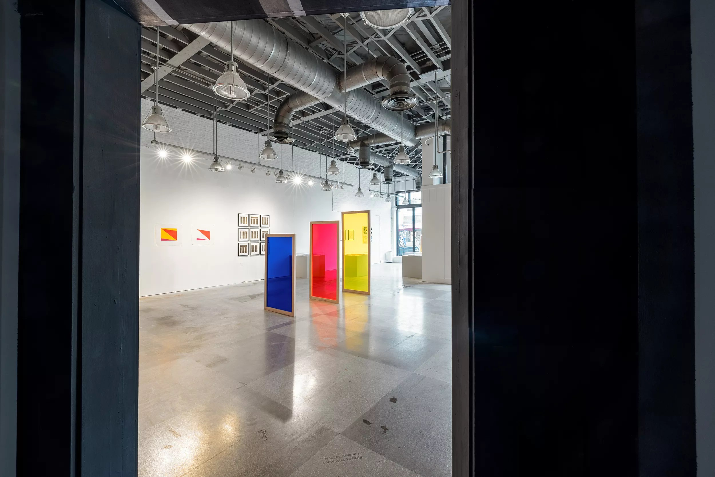 Seemingly simple, these works reduce hard-edge abstraction to the core primary ingredients of line, form, and color. The antithesis of figurative art, abstraction allows the mind to consider the possibilities of space and agency – in this case, the calculated processes each artist engages in to execute a finished work. Gone are the days when abstraction as a visual genre is met with whispers of misunderstanding and blank stares; here each artist reignites the visual language as one of lucent tints and funky shapes.