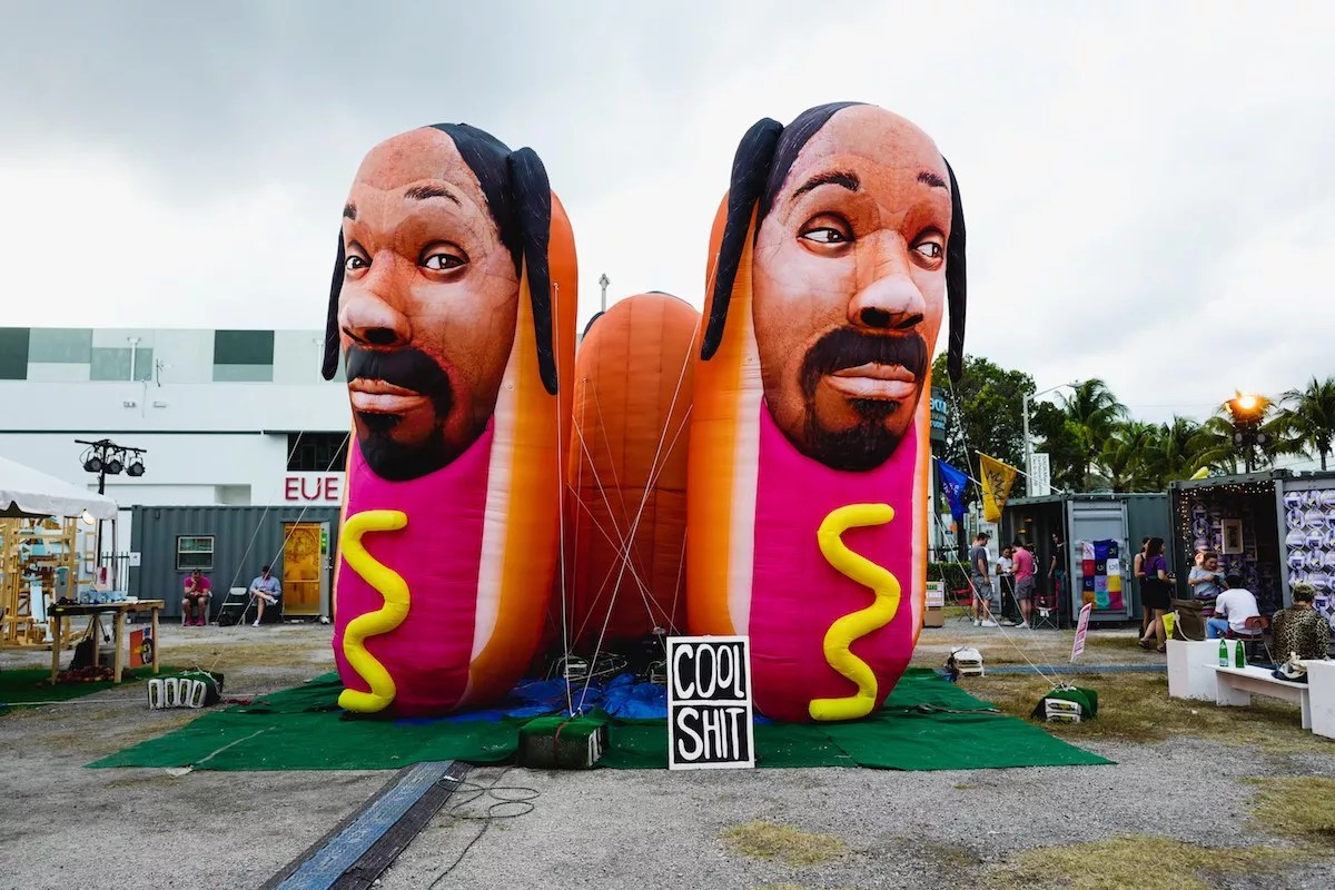 Satellite Miami’s inflatable Snoop Dog hot dogs.