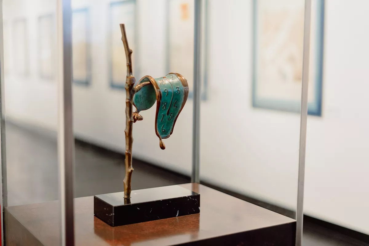 The works throughout span many of Dalí’s well-known – as well as lesser-known – series, from “Don Quixote” and “Conquest of the Cosmos” to “Objects of the Future,” the Ten Commandment sculptures, silver medals, plates, and more. And there is even a reproduction of the infamous Mae West couch Dalí designed – complete with eyes gazing upon the sitter from TVs – serving as a selfie spot before you enter the first room. You’ll see artwork dedicated to his muse and wife, Gala, surreal nudes, and even the illustrious melting clocks – and many of these pieces you’ve likely never seen before, as they are all on loan from the private Shanahan Collection.