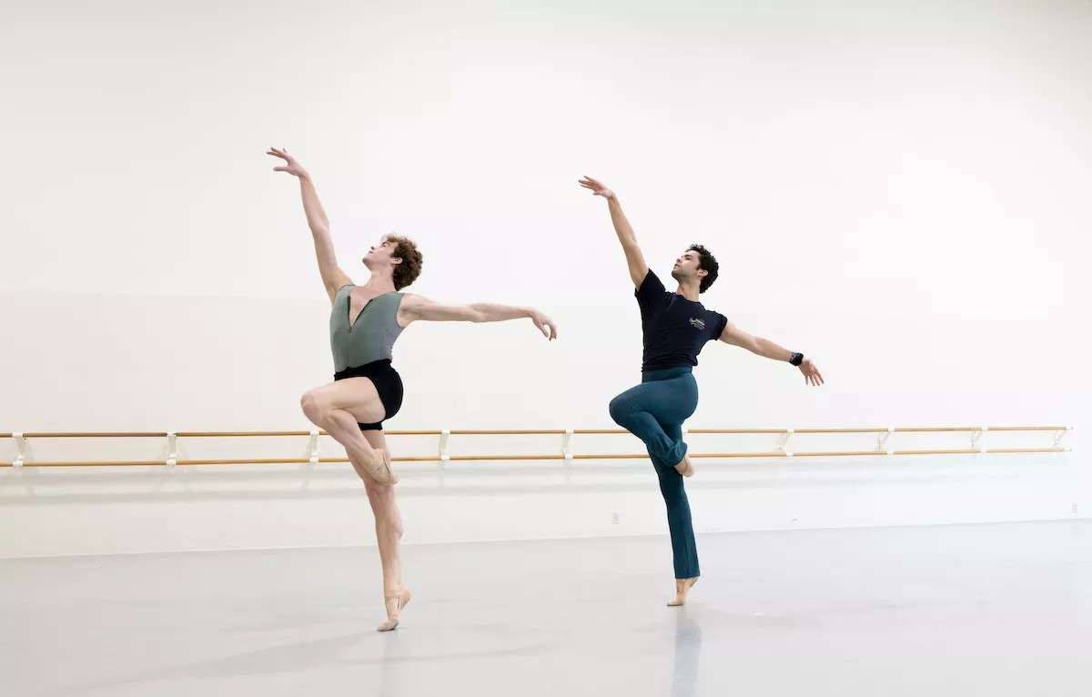 Miami City Ballet dancers Jordan Martinez and Alexander Kaden in rehearsal with choreographer Durante Verzola