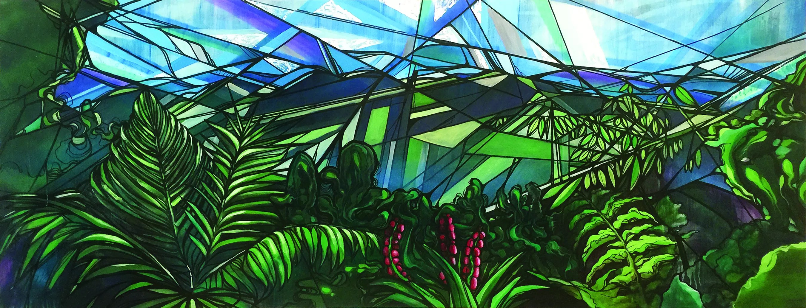 When he began painting canvases, Trek recalls, his mind made no separation from the work he was doing as a muralist. “As I started painting more and more and getting some of the rust off and developing my technique again, there was very little I couldn’t do on a canvas and vice versa,” he says. “And it’s something a lot of mural-based artists struggle with.”
