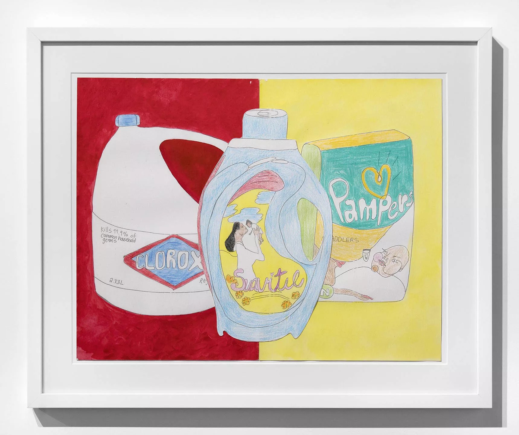 Home Supply Collage (2017): Crayon, colored pencil, watercolor, and hand-colored digital print on German etching paper.