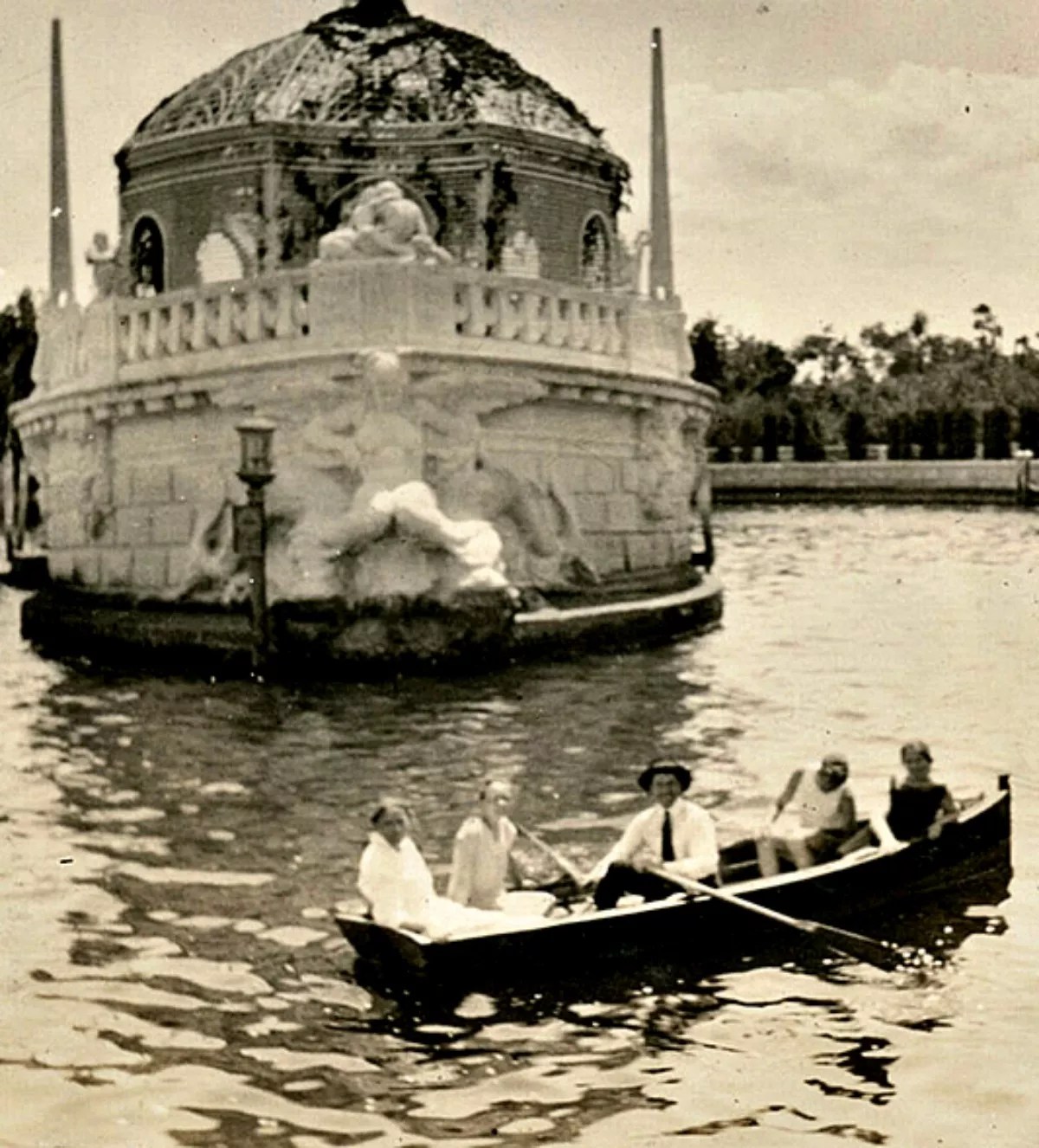 From 1917 to 1919, Calder, nearly 50 years old at the time, labored beneath the hot South Florida sun, pounding rock with a chisel, slowly shaping the limestone into the form of mythical sirens. When the barge was finally completed, Deering, along with his ménage, would take gondolas to the stone ship, which was a literal dreamboat. Lush with trees and a flowering gazebo, the barge was the site of the millionaire’s fairy-tale-like parties.