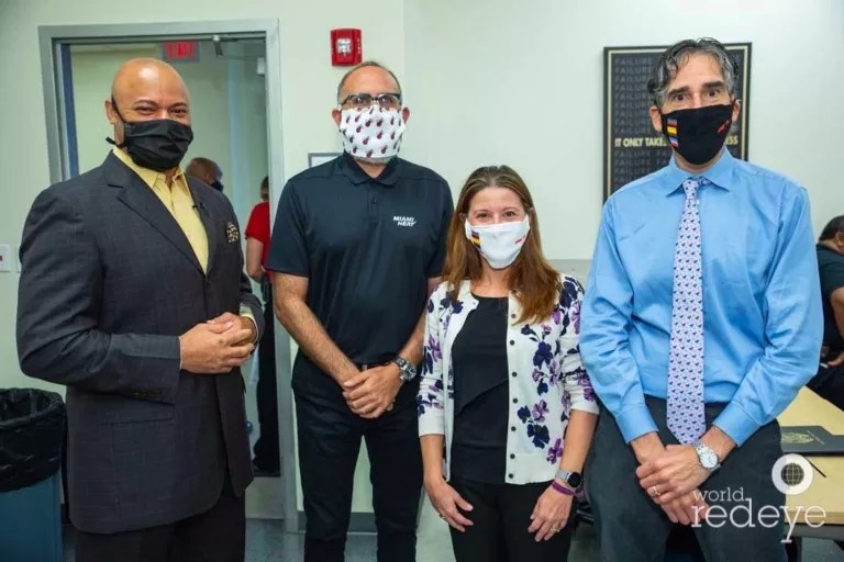 Dedication To Community (D2C), in partnership with the Miami Heat and the Miami Police Department, kicked off the pilot program of the specialized law enforcement training announced on September 3, 2020. The objective of the training, called “Serving in the 21st Century”, is to expose an audience of law enforcement officers to an expanded, comprehensive, and creative methodology for serving communities. Members of the Miami Police Department who participate in these sessions will discuss bias, cultural competency, historical and local impressions of law enforcement, safe interactions, and justice issues. Photo courtesy of WorldRedEye.com