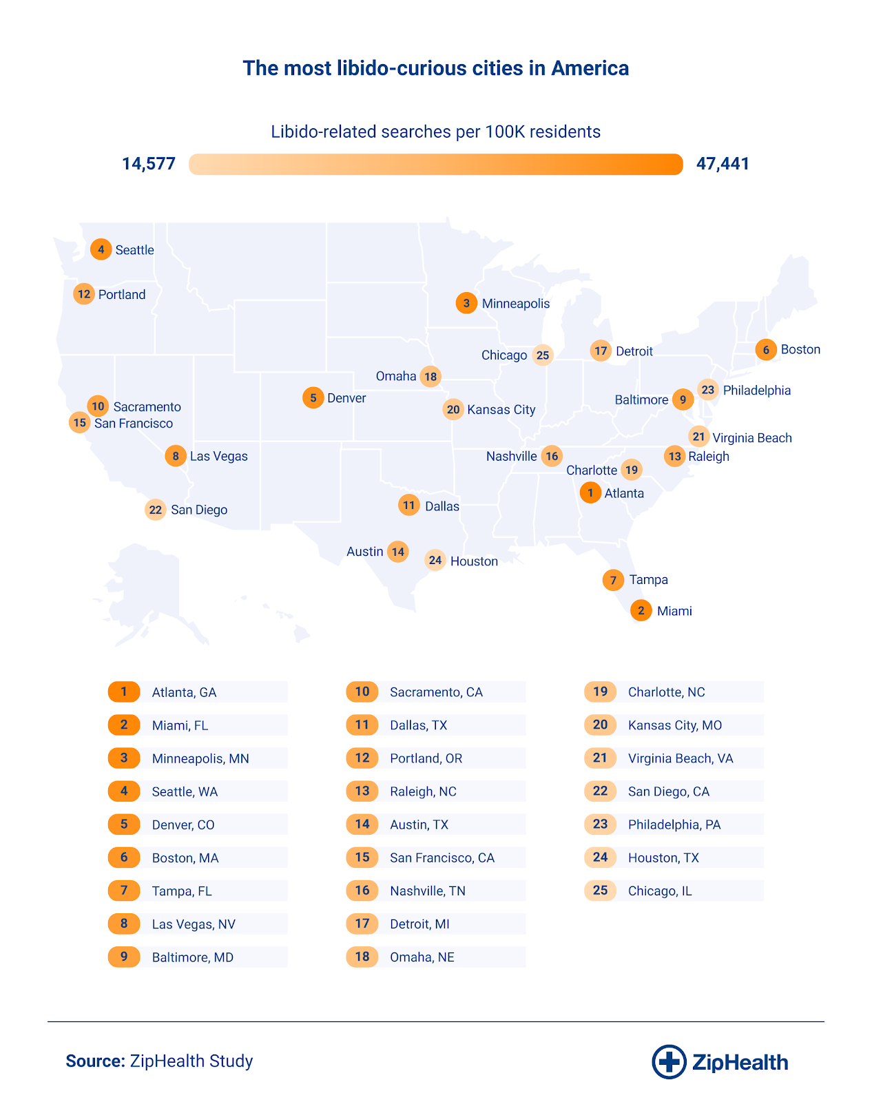 That’s according to ZipHealth, a U.S.-based online pharmacy that sells sexual health medications, among other meds. Its latest survey compiled data for what it calls its “libido index,” which analyzed libido-related Google searches from all 50 states and major U.S. cities from January 2024 to April 2025. The research team says it honed in on 303 search terms, focusing on “keywords with a consistent upward trend.”
