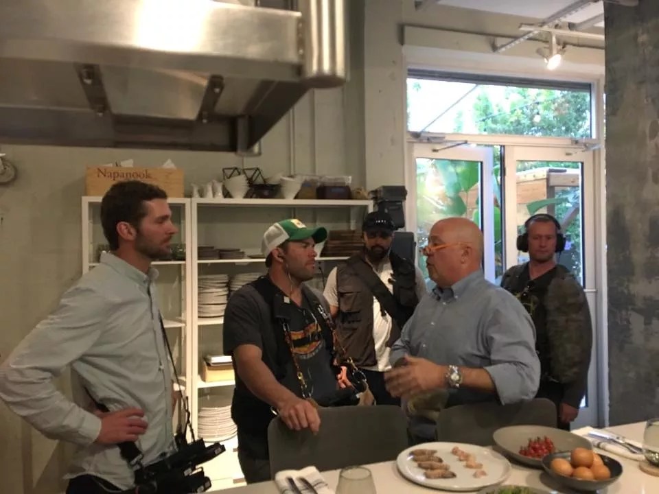 The Bizarre Foods crew confers with Andrew Zimmern at Alter.