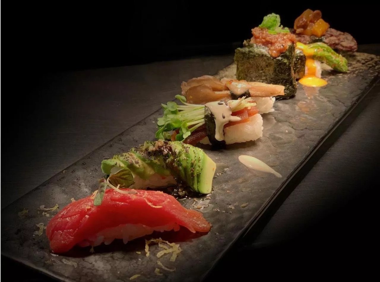 161 Ocean Dr., Miami Beach Seven-piece vegetarian nigiri at Dragonfly. Dragonfly Izakaya & Fish Market.