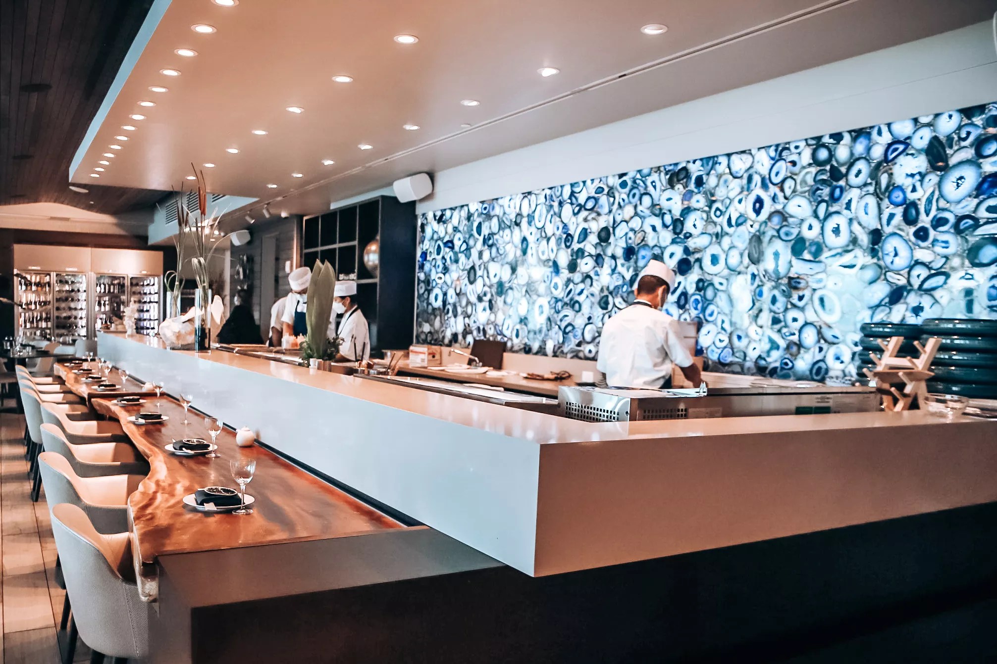 What was once a stretch of primarily frozen drinks and crispy fish sandwiches now includes restaurants by Michelin-starred chefs, a shareable truffle hummus to die for, and sushi bars like Takato with 26-foot altars of raw artistry. Whether you’re looking for wood-fired Italian under the stars, Philly cheesesteaks with a side of Eagles fandom, or crab-fried delights at an Intracoastal haunt, this stretch of sand and sun knows how to flex its culinary prowess.