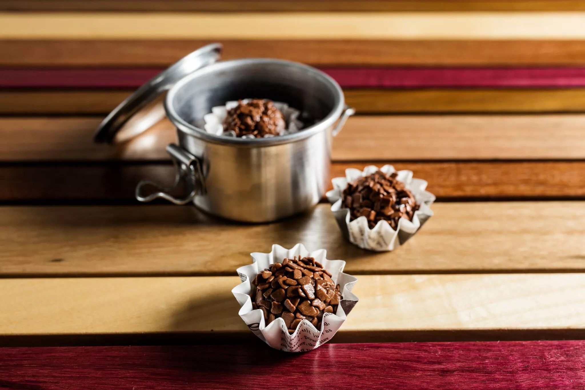 Brazilian sweets include brigadeiros, traditional chocolate truffles made with milk or dark chocolate and condensed milk; cuca de goiabada com creme gelado de queijo, a warm guava cake drizzled with a cold, creamy cheese sauce; and torta de caipirinha de limÁ£o, a deconstructed lime pie topped with cachaça merengue (Brazilian white rum made from sugarcane).