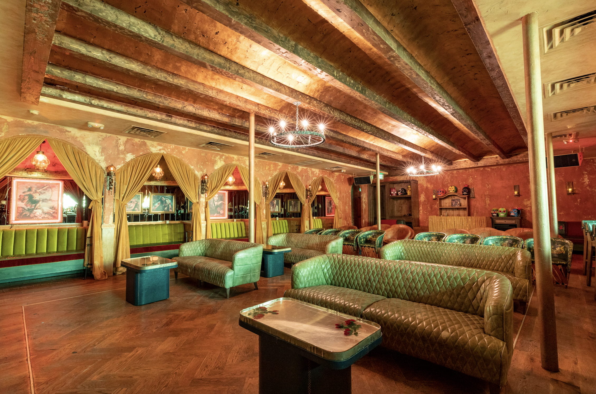 The 3,000-square-foot speakeasy is still adorned with plush banquettes, sugar-skull decor, and repurposed church doors.