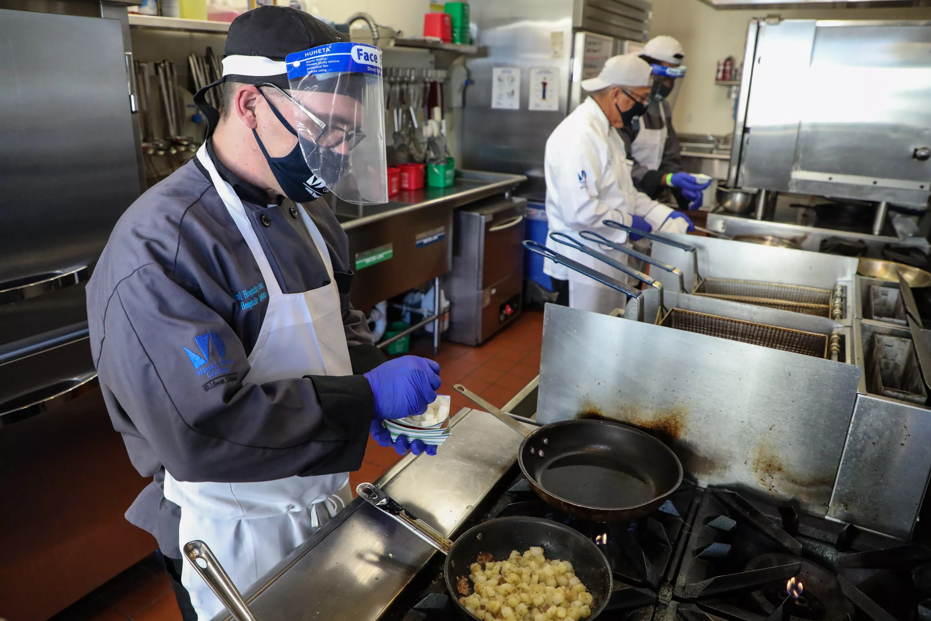 Miami Dade College’s Hospitality Institute normally offered training five days a week during the seven-week program, with students spending mornings in the classroom and afternoons working hands-on in the kitchen.