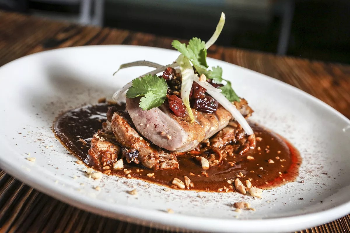The focus of the menu is the half-dozen ollas, the restaurant’s namesake, which loosely translates to “cooking pots.” Here is where to find that menudo, which should be accompanied by a cast-iron platter piled with loamy huitlacoche sautéed with shiitake mushrooms, all smartly dressed with slightly spicy toasted garlic, chile de árbol, and the medicinal Mexican herb epazote. Coloradito Photo by CandaceWest.com