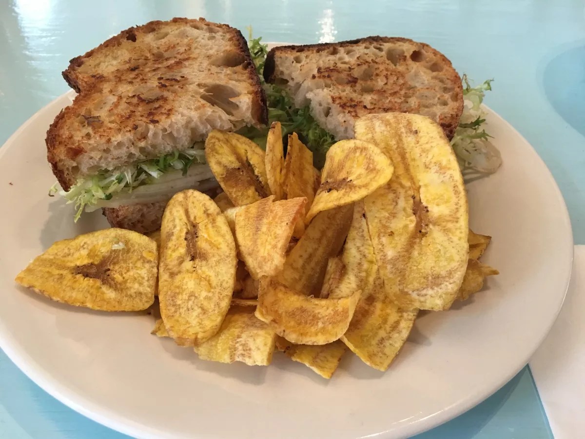OTL’s manchego and pear sandwich is served with plantain chips, and the baby greens and citrus salad comes topped with pickled onions. Both are light yet full of flavor, and the attention to detail is evident. It’s a lovely place to have lunch or catch up on some work while enjoying some tea and a cookie.