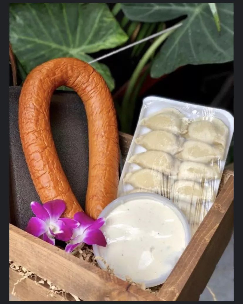 The Polish dinner kit offers whole smoked sausage, pierogis and and sour cream sauce.