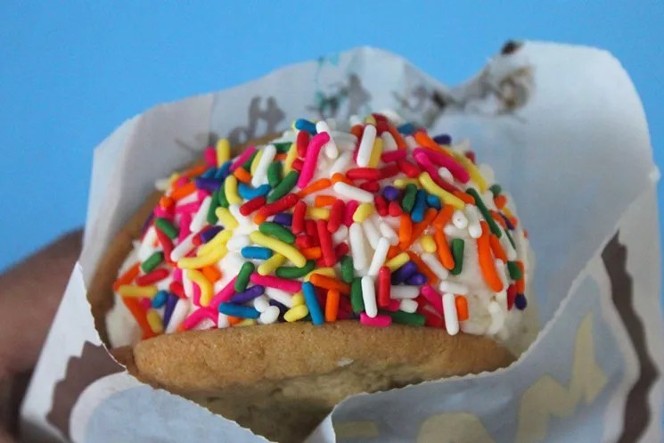 The Dough Boy, a homemade doughnut breakfast sandwich, draws crowds.